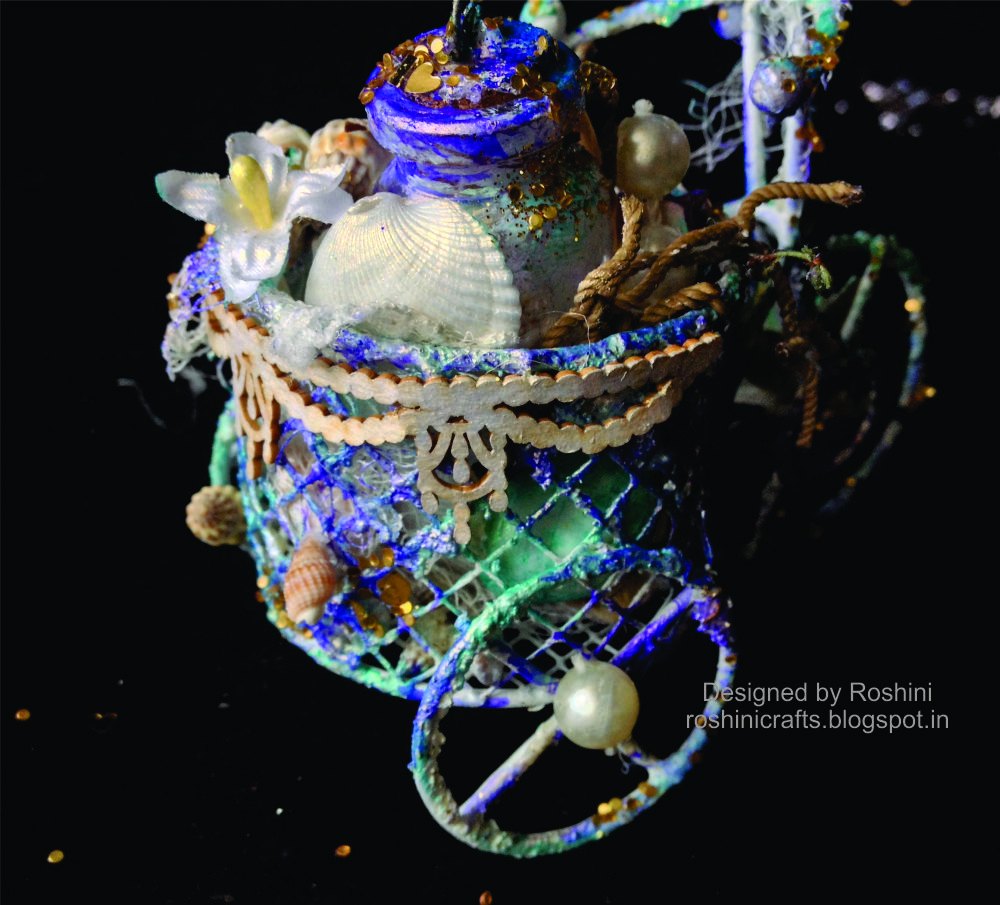 Altering and mixed media are my favorite styles, But to apply for the DT I choose altered style project, A small bicycle with basket which is in my collection. Summer is meant for enjoying at sea and beach, and i have used all that sea elements to alter and decorate the mini cycle.